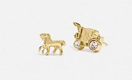 Coach Horse And Carriage Crystal Stud Earrings馬車鑲水晶耳環