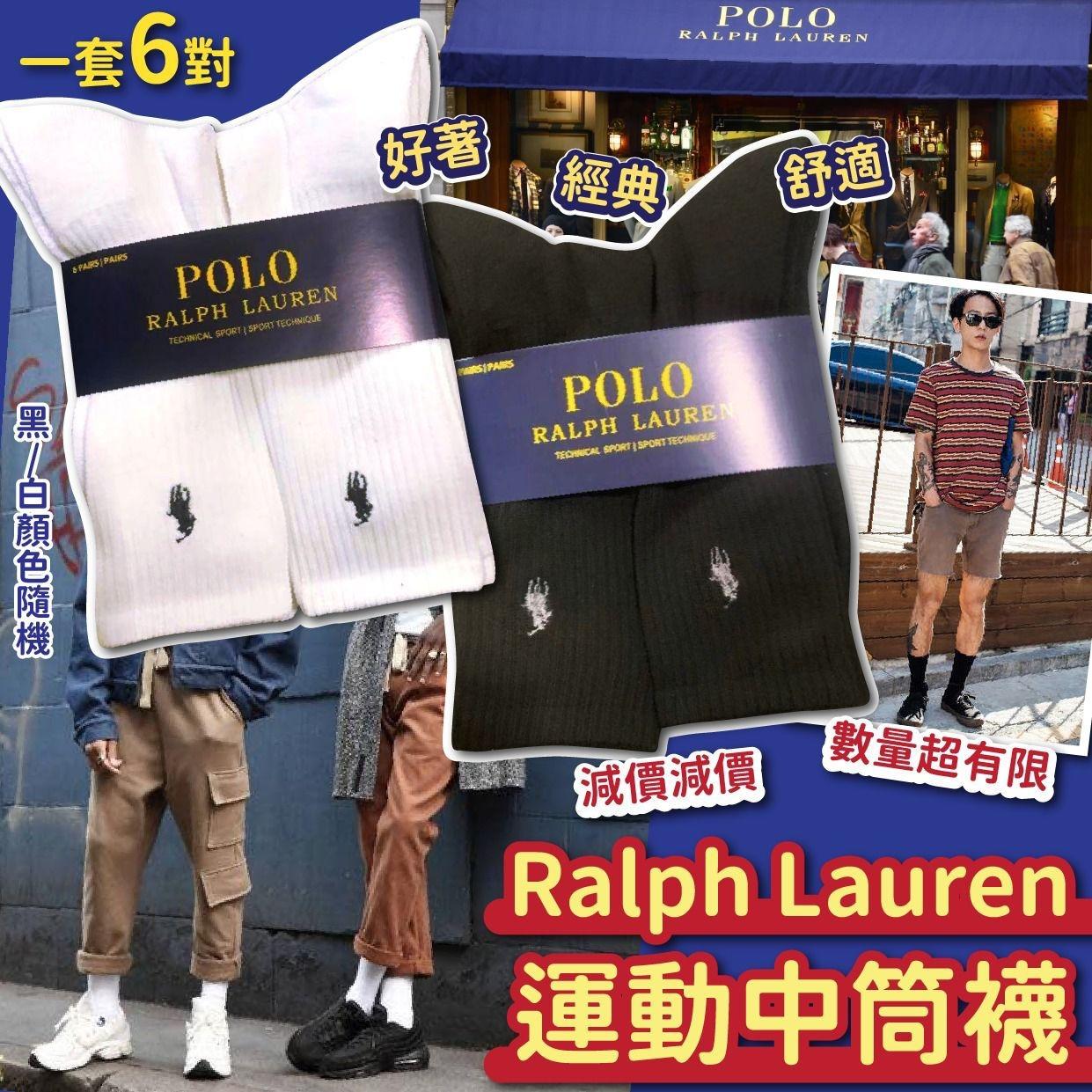 Ralph Lauren 運動中筒襪 (6對裝) 黑/白顏色隨機